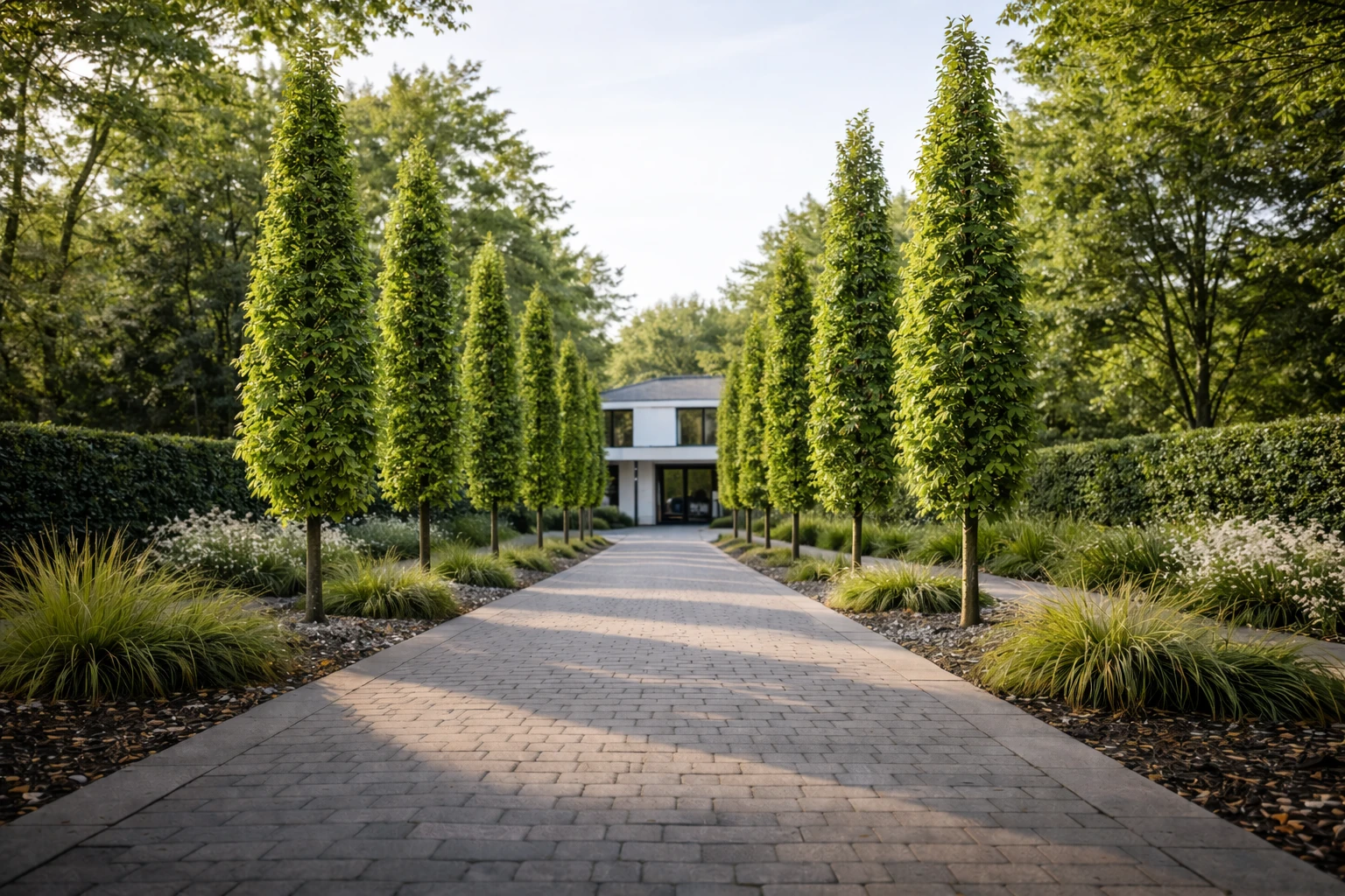 Ambrowiec ‘Slender Silhouette’ znajduje zastosowanie wszędzie tam, gdzie potrzebna jest wyraźna forma pionowa. Jego smukła, kolumnowa sylwetka doskonale porządkuje przestrzeń i wprowadza elegancki rytm do kompozycji ogrodowej.